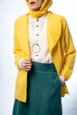 دامن تابستای و بهاری با کمر پشت کش و از پارچه وال 2 لایه. «بانی» را می توان با شومیز مایرا و مانتوی «سان فلاور» استایل کرد.