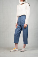 شلوار مینیستر از پارچهی لطیف لینن و در رنگ مشکی است. قد آن تا بالای قوزک پاست. برش شلوار در اطراف ران کمی گشاد است، به همین دلیل شلوار در تن کاملا راسته میایستد. شلوارهای راسته به اینکه بدن لاغر و کشیده دیده شوند کمک میکنند.