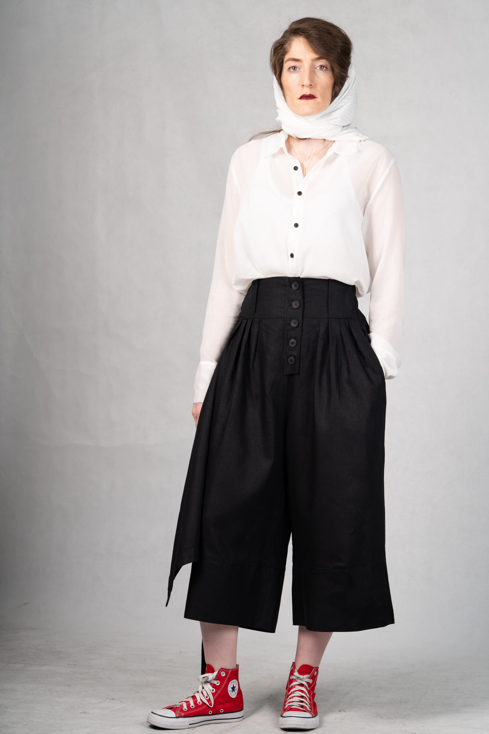 شلوار لینن جلو پیش بندی استایل ژاپنی
